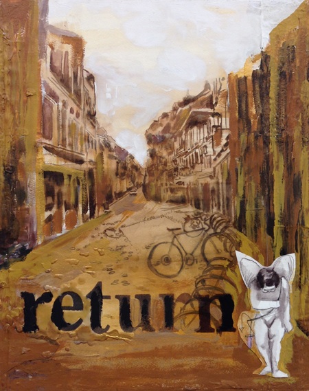“Sharon Lyn Stackpole’s Namaste, a mixed media collage and painting on canvas, emits a beautiful, intimate and sensuous vibe.”