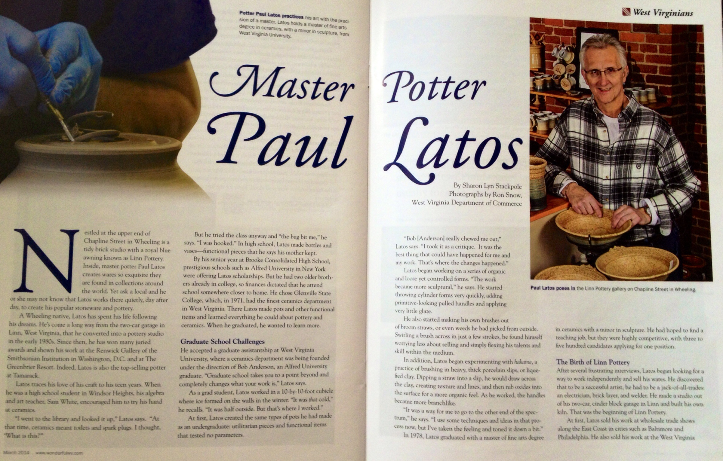 “Master Potter Paul Latos,” Wonderful West Virginia Magazine, March 2014