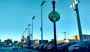 Public art street sign installation, “Exploring”, StreetWorks East End Public Art Initiative, Charleston, WV, Washington Street
